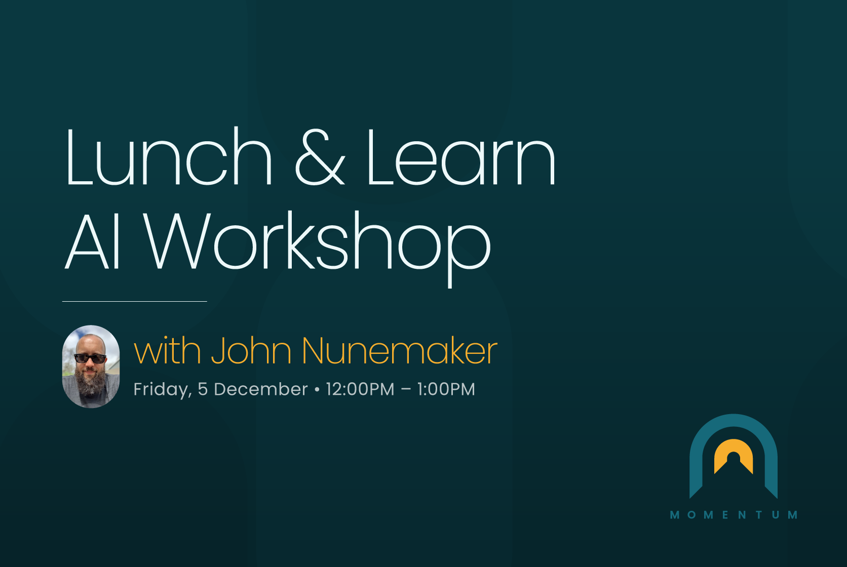 Join us for lunch with John Nunemaker, Founder of BoxOut Sports to have an open discussion on AI and the different ways it might nspire youto create or optimize your work and life. He will share some cool insight as a builder and serial life hacker.