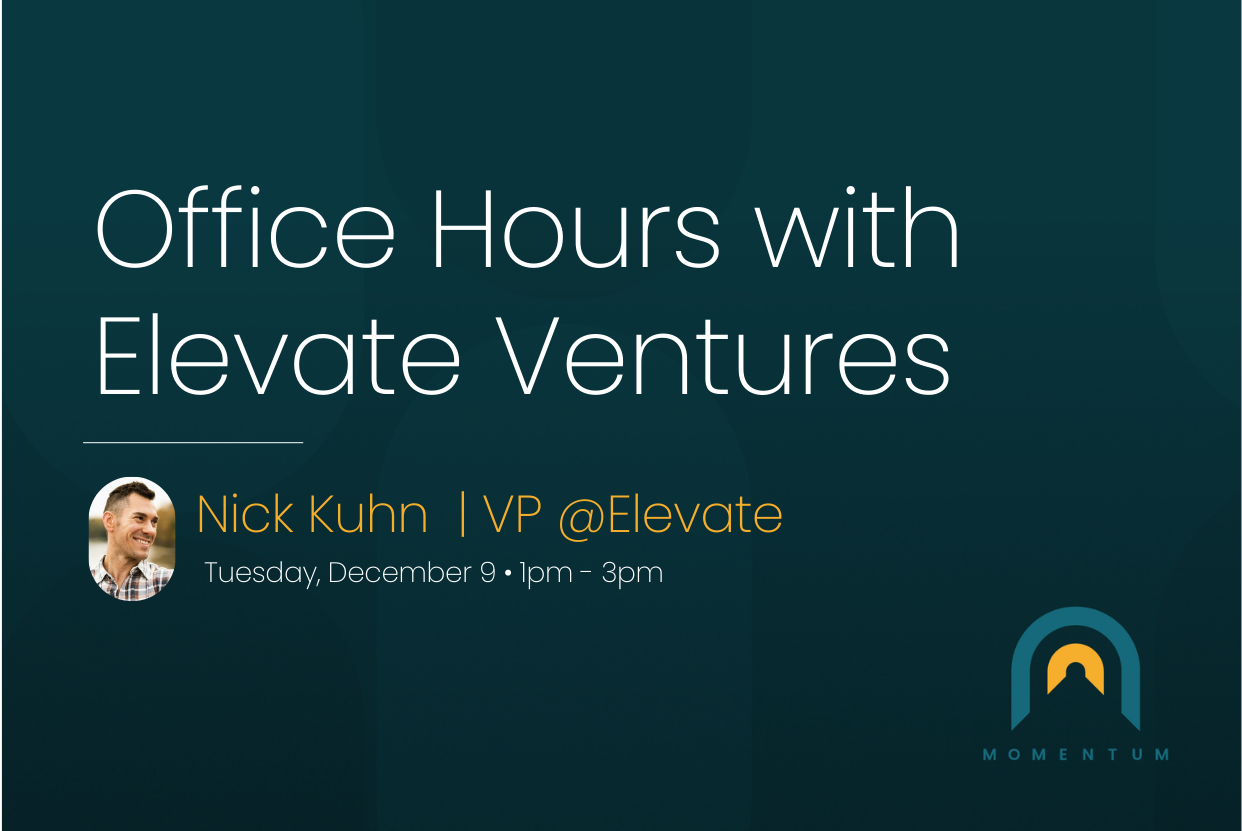 We’re excited to kick off Momentum Office Hours with Nick Kuhn from Elevate Ventures. If you’re looking for pitch deck help, feedback on your startup idea, or guidance on funding, sign up for a session below.